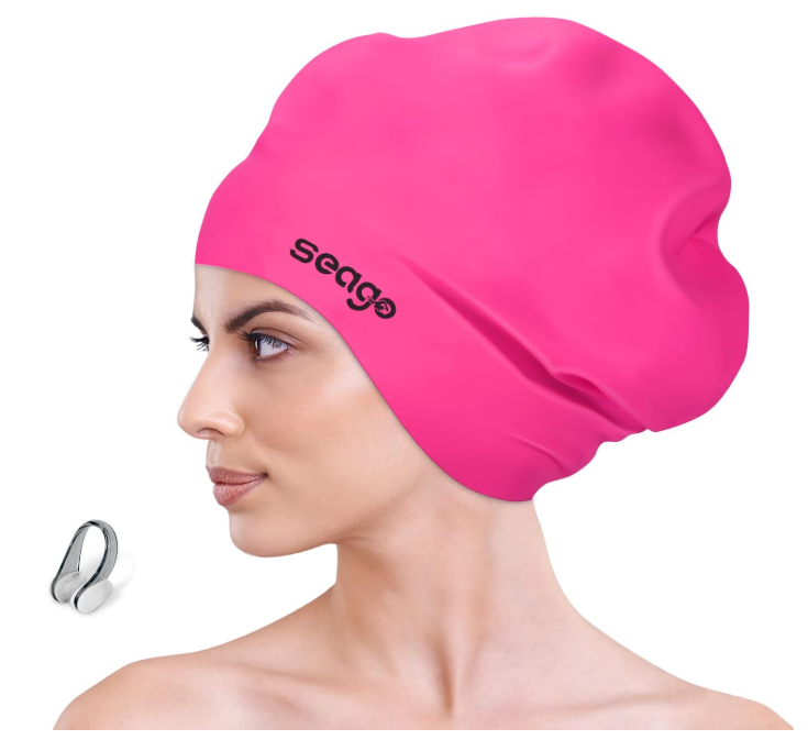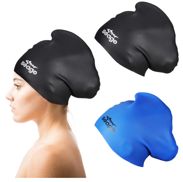 Seago swim cap has super-large space which is suitable for all kinds of heads and hairstyles: long hair, curly hair, dreadlocks, Braid hair, Extensions, weave on, and will not tangle your hair when swimming.